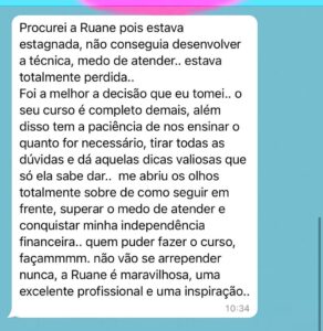Nada substitui a orientação personalizada de uma expert que já trilhou o caminho do sucesso. Ao adquirir a Formação “Lashes que Brilham”, você ganhará uma sessão de mentoria exclusiva com a própria Ruane. Esta é uma oportunidade única para obter insights valiosos e conselhos práticos diretamente de uma das melhores profissionais do mercado de extensão de cílios.